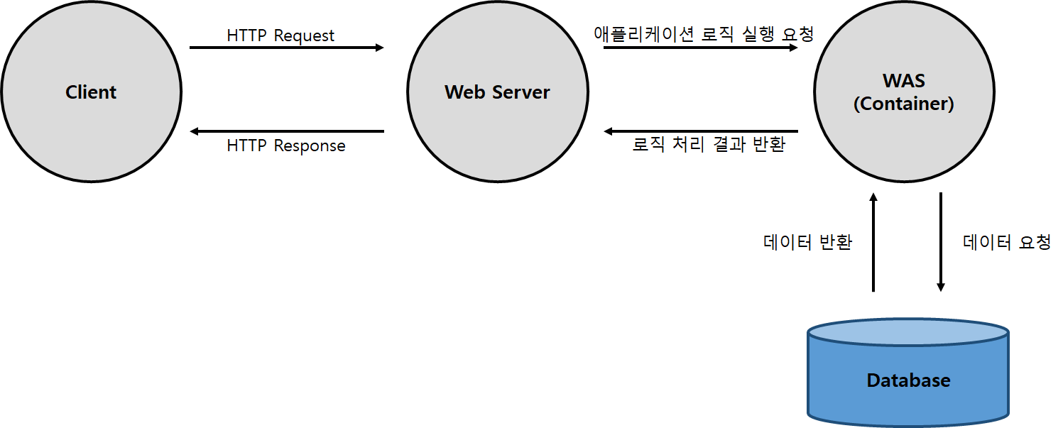 웹 브라우저와 같은 클라이언트로부터 웹 서버가 요청을 받으면 애플리케이션에 대한 로직을 실행하여 웹 서버로 다시 반환해주는 소프트웨어입니다.